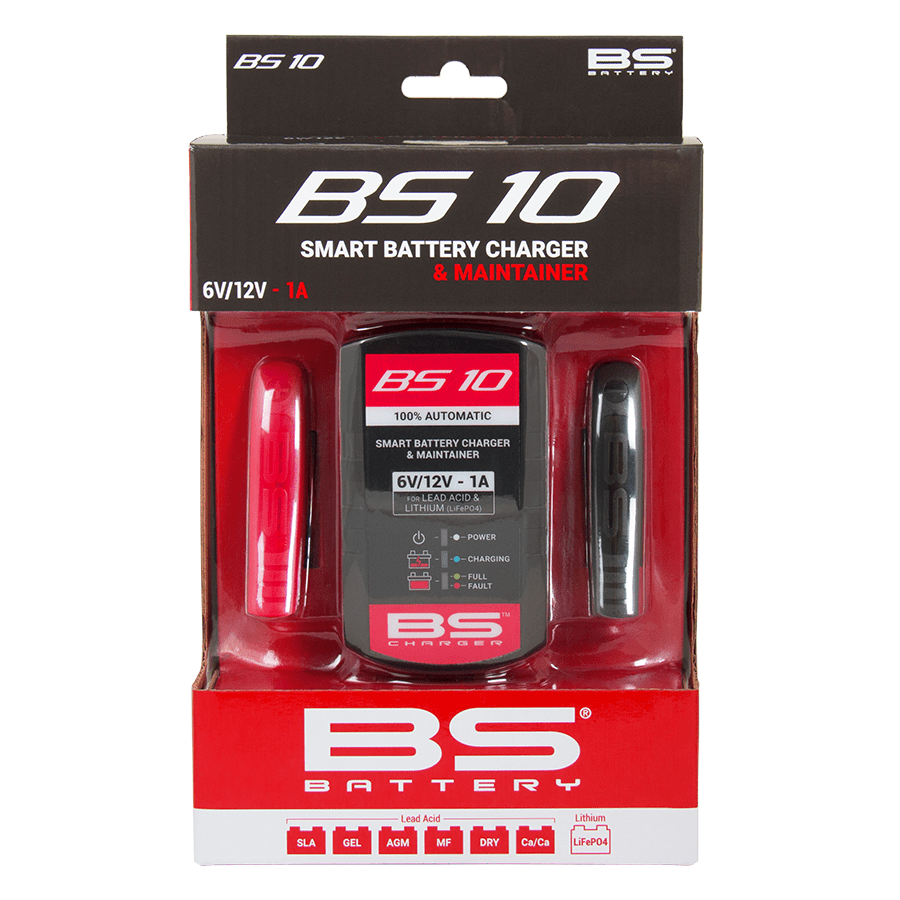 El nuevo BS 10 es un cargador de batería inteligente de 6V y 12V y mantenedor con clasificación de 1A. Diseñado para baterías de ácido de plomo y litio, este cargador automático es adecuado para baterías de hasta 20AH.