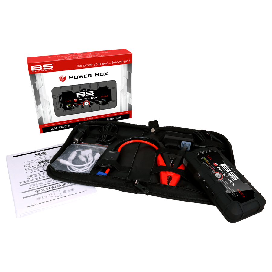 El Power Box es una solución de potencia de respaldo perfecta que puede entregar 400A para los vehículos de arranque de salto (motocicletas, automóviles, barcos y más …), cargar dispositivos USB (teléfonos inteligentes, tabletas …) y ofrecer iluminación de emergencia.